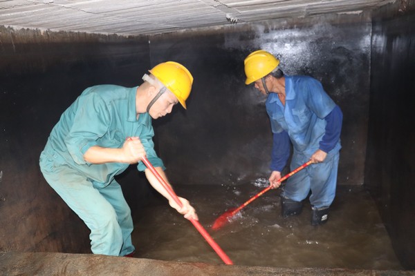 由于蓄水池內(nèi)部結(jié)構(gòu)復(fù)雜,只能采用人工方式進行清洗。為不影響宿舍區(qū)居民正常用水,黨員志愿者們克服蓄水池內(nèi)潮濕悶熱的惡劣環(huán)境,用水桶將池內(nèi)的污泥水一點點清理出水池,再用掃把、刷子清掃干凈水池內(nèi)的泥漿、雜物,為搶時間、趕進度,大家揮汗如雨,僅用3個多小時就完成了8個蓄水池的清洗工作。